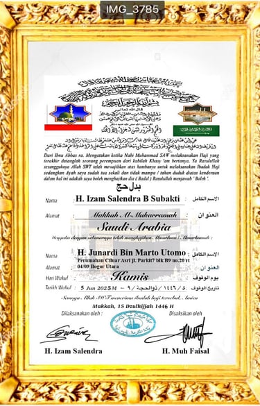 Biaya Badal Haji 2026 Hanya Rp 10 Jt Jasa Terpercaya, Berpengalaman, dan Amanah. Dapatkan Bukti Dokumentasi Video, Foto, Sajadah, Air Zam zam, Kurma dan Sertifikat. Biaya Badal Haji 2026 yang terjangkau jasa yang dapat diandalkan dan berpengalaman. Kami merupakan agen resmi menyediakan layanan badal haji 2026 dengan biaya yang sangat bersahabat. Berbekal pengalaman bertahun-tahun dalam bidang ini, kami berkomitmen untuk memberikan pelayanan yang terbaik kepada Anda. Tim kami profesional dan berdedikasi siap untuk melaksanakan ibadah badal haji yang Anda percayakan. Anda tidak perlu ragu untuk memilih kami sebagai pelaksana badal haji untuk orang-orang tercinta Anda, kami telah melayani banyak pelanggan yang merasa puas dengan layanan kami. Jangan lewatkan kesempatan untuk menjalankan amanah dari keluarga Anda dalam melaksanakan ibadah badal haji melalui layanan kami yang terpercaya dan berpengalaman. Segera hubungi kami untuk informasi lebih lanjut dan mendapatkan penawaran terbaik!